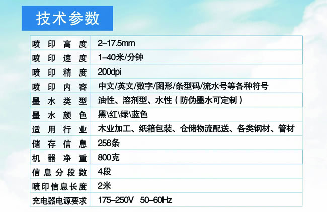 百特T-100A手持噴碼機是國內(nèi)首家采用英國技術(shù)生產(chǎn)的全內(nèi)置充電式智能型噴碼機,在國內(nèi)手持噴碼機行業(yè)中處于最領(lǐng)先技術(shù)! 國內(nèi)首創(chuàng)噴頭朝下噴印技術(shù),突破了手持噴碼機只能水平噴印的局限,采用模塊化外殼,克服了手持噴碼機零配件式的組裝方式所產(chǎn)生的諸多弊端,噴碼機墨水安裝方便快捷,克服了以前噴碼機墨水安裝時漏墨、不出墨的缺點。液晶顯示屏可滾動顯示打印內(nèi)容,本噴碼機采用USB通訊接口,噴頭分辨率為200dpi,電池為日本進口三陽鋰電池,可在一系列的吸附性表面進行噴印,如細木工板、木工板、板材、人造石、石材、木箱、紙箱、石膏板、木地板、耐火磚等。本手持噴碼機具有一機多用、清晰度高、性能穩(wěn)定,噴印速度快、使用壽命長,字跡清楚、耗電量小,耗材經(jīng)濟,操作簡便等多種優(yōu)點,體積較小,充滿電后在無電場合進行可連續(xù)噴印10 小時以上,噴碼機采用了外置墨盒,全封閉式墨路,快速換墨盒,絕不浪費一滴墨水。